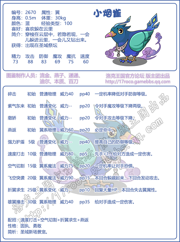 《洛克王国》小烟雀技能图鉴