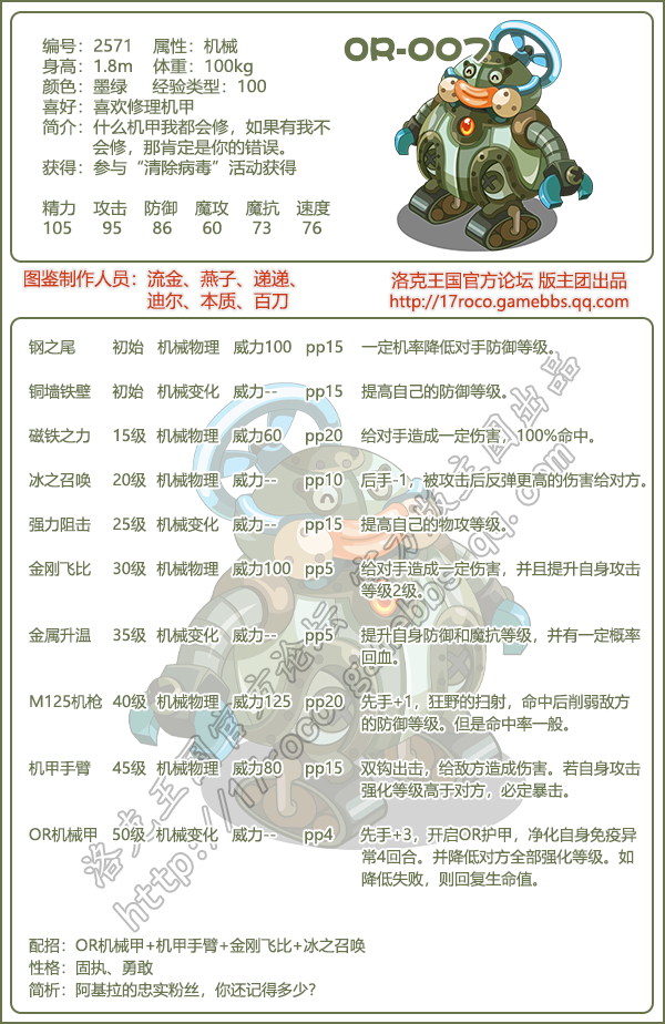 《洛克王国》OR-007怎么样,厉害吗?洛克王国手游是一款画风很小清新的RPG类冒险竞技手游,游戏中宠物角色非常多,下面小编就给大家带来了《洛克王国》OR-007技能图鉴介绍,一起看看吧!
