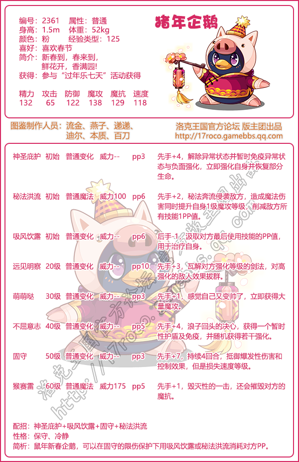 《洛克王国》猪年企鹅怎么样,厉害吗?洛克王国手游是一款画风很小清新的RPG类冒险竞技手游,游戏中宠物角色非常多,下面小编就给大家带来了《洛克王国》猪年企鹅技能表图鉴介绍,一起看看吧!