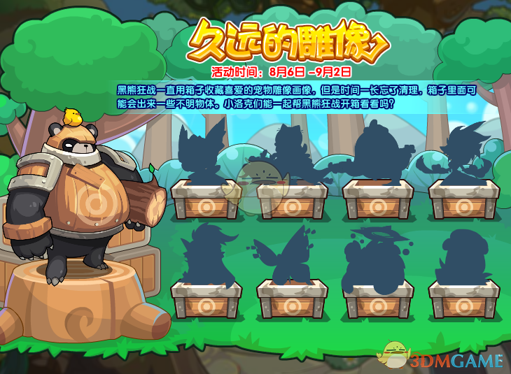 黑熊狂战一直用箱子收藏喜爱的宠物雕刻画像,但是时间一长忘了清理,箱子里面可能会出来一些不明物体。小洛克们能一起帮黑熊狂战开箱看看吗?