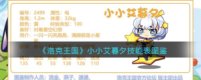 以上就是小编整理带来的《洛克王国》小小艾暮夕技能表图鉴介绍,大家还喜欢吗?更多精彩内容,请点击关注易采游戏网,小编将持续为您更新!
