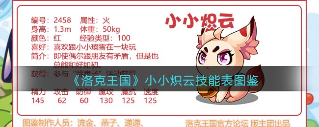 《洛克王国》手游小小炽云怎么样,厉害吗?游戏中宠物角色非常多,【小小炽云】宠物的技能属性是什么,该如何配招呢?下面小编就给大家带来了《洛克王国》小小炽云技能表图鉴介绍,一起看看吧!