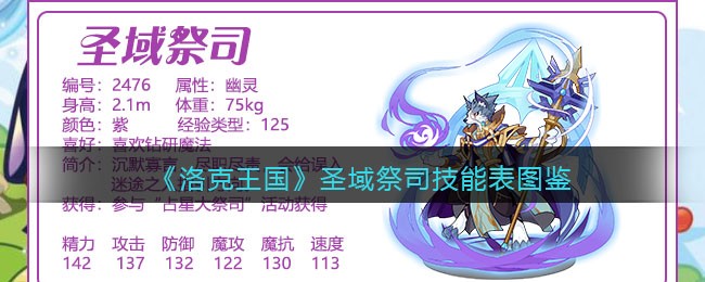 《洛克王国》手游圣域祭司怎么样,厉害吗?游戏中宠物角色非常多,【圣域祭司】宠物的技能属性是什么,该如何配招呢?下面小编就给大家带来了《洛克王国》圣域祭司技能表图鉴介绍,一起看看吧!