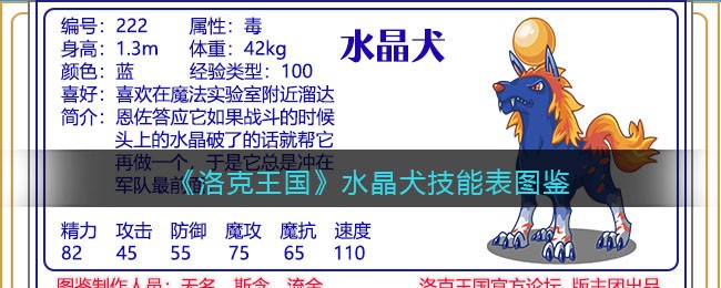 《洛克王国》水晶犬怎么样,厉害吗?游戏中宠物角色非常多,【水晶犬】宠物的技能属性是什么,该如何配招呢?下面小编就给大家带来了《洛克王国》水晶犬技能表图鉴介绍,一起看看吧!