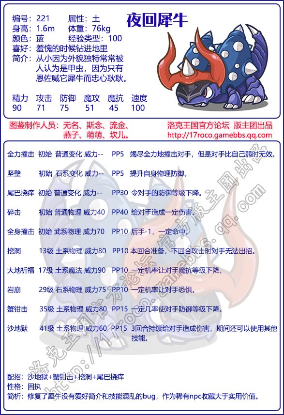 《洛克王国》夜回犀牛技能表图鉴
