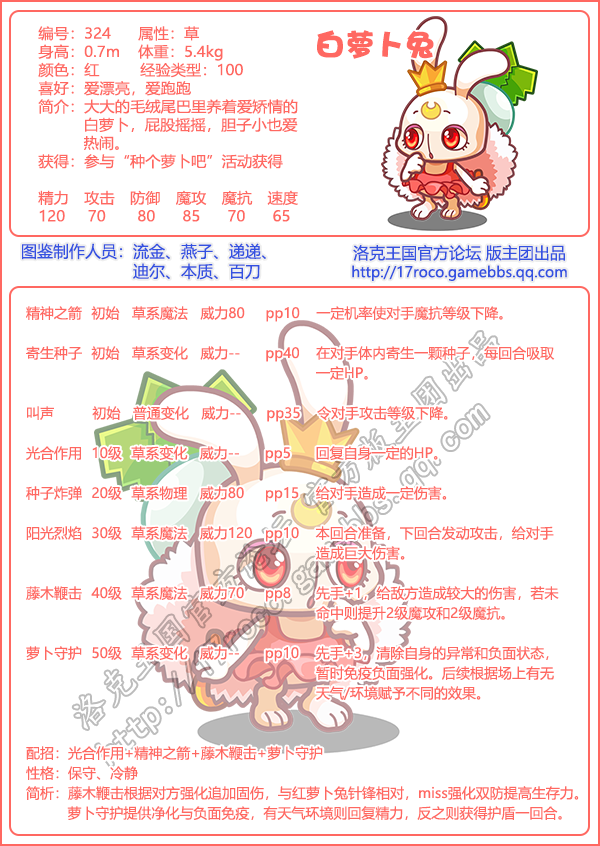 《洛克王国》白萝卜兔怎么样,厉害吗?游戏中宠物角色非常多,【白萝卜兔】宠物的技能属性是什么,该如何配招呢?下面易采游戏网小编就给大家带来了《洛克王国》白萝卜兔技能表图鉴介绍,一起看看吧!