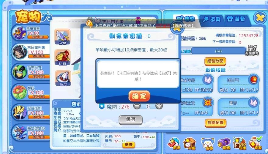 亲密度按宠物需要的属性进行分配,分配完毕后,点击保存即可。