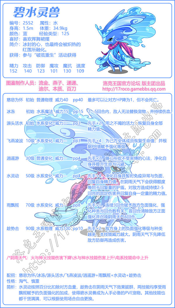 碧水灵兽:获取方法 | 技能表 | 性格推荐 | 技能配招 | 重生精粹数量 | 亲密度培养 | 努力值加点