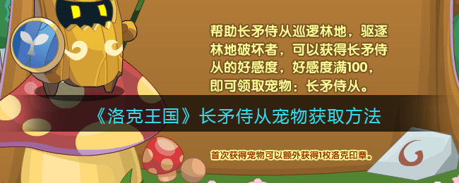 帮助长矛侍从巡逻林地,驱逐林地破坏者,可以获得长矛侍从的好感度,好感度满100,即可领取宠物:长矛侍从。