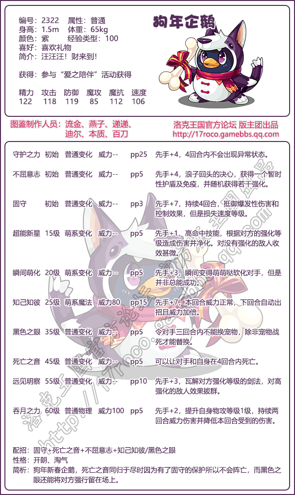 《洛克王国》狗年企鹅技能表图鉴