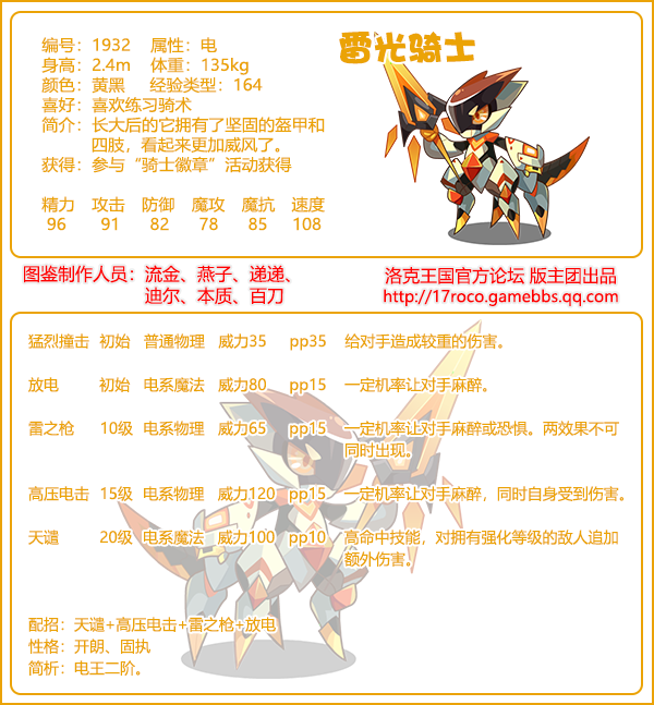以上就是小编整理带来的《洛克王国》雷光骑士技能表图鉴,大家还喜欢吗?更多精彩内容,请点击关注易采游戏网,小编将持续为您更新!