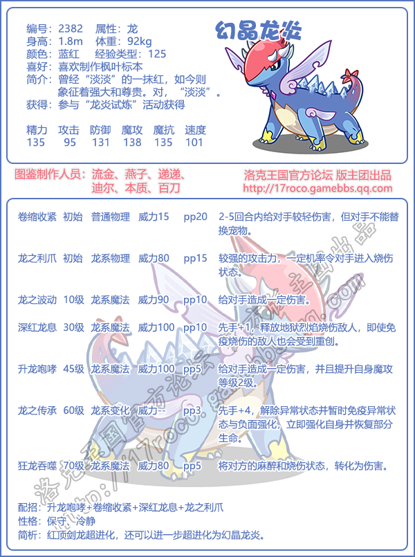 《洛克王国》是一款轻松好玩的休闲类手游,Q萌的游戏画风,玩家将被置身于一个精彩的世界中!游戏中拥有海量的宠物精灵,下面易采游戏网小编给大家带来了《洛克王国》幻晶龙炎技能表图鉴介绍,想要知道【幻晶龙炎】信息的小伙伴速来围观吧!