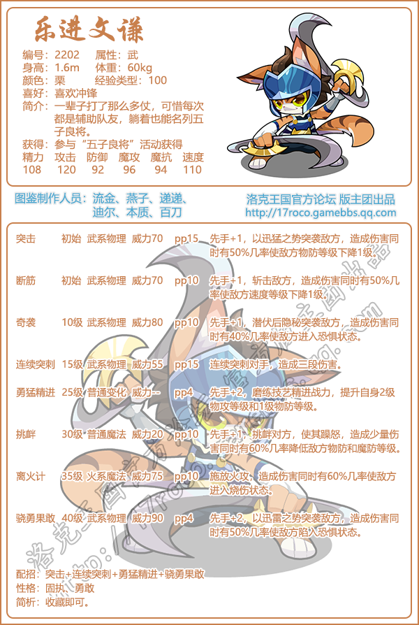 《洛克王国》是一款轻松好玩的休闲类手游,Q萌的游戏画风,玩家将被置身于一个精彩的世界中!游戏中拥有海量的宠物精灵,下面易采游戏网小编给大家带来了《洛克王国》乐进文谦技能表图鉴介绍,想要知道【乐进文谦】信息的小伙伴速来围观吧!