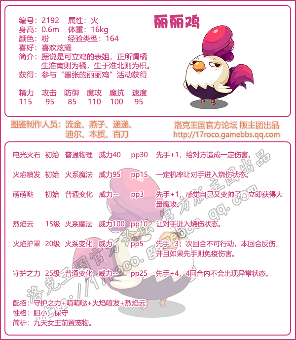 进化路线:丽丽鸡→九天女王→揽月圣女