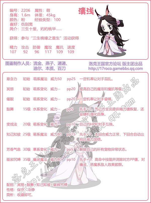 《洛克王国》是一款轻松好玩的休闲类手游,Q萌的游戏画风,玩家将被置身于一个精彩的世界中!游戏中拥有海量的宠物精灵,下面易采游戏网小编给大家带来了《洛克王国》清浅技能表图鉴介绍,想要知道【清浅】信息的小伙伴速来围观吧!