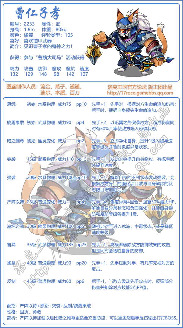 以上就是小编整理带来的《洛克王国》曹仁子孝技能表图鉴介绍,大家还喜欢吗?更多精彩内容,请点击关注易采游戏网,小编将持续为您更新!