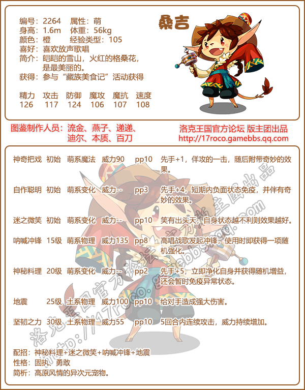 《洛克王国》是一款轻松好玩的休闲类手游,游戏中拥有海量的宠物精灵,桑吉怎么样,厉害吗?下面易采游戏网小编给大家带来了《洛克王国》桑吉技能表图鉴介绍,想要知道该宠物信息的小伙伴速来围观吧!