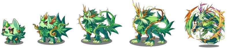 金藤宝宝→金藤勇士→金藤狂战→圣藤草王→圣灵草王(与灵蔓草王合体)另有皮肤学院金藤。
