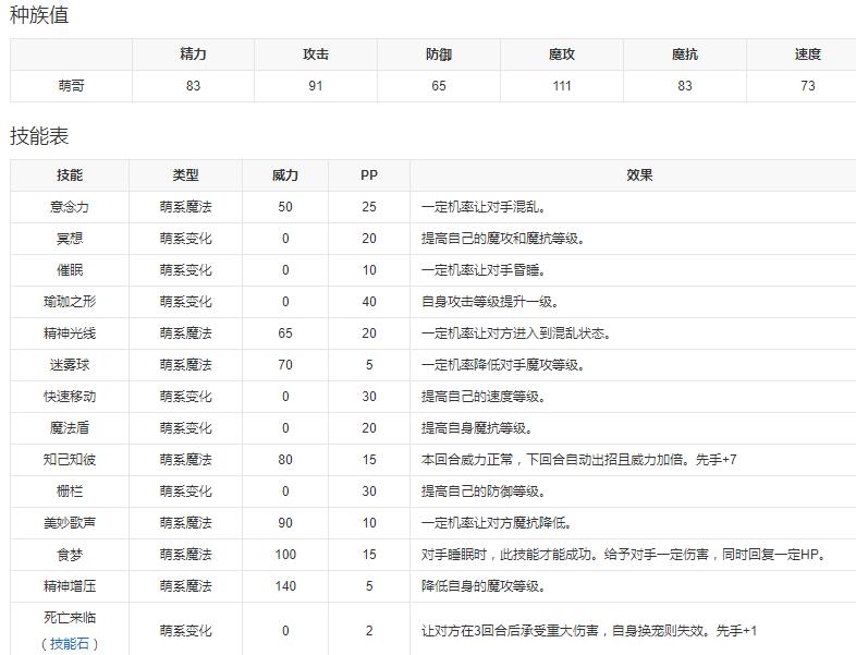 技能表、种族值