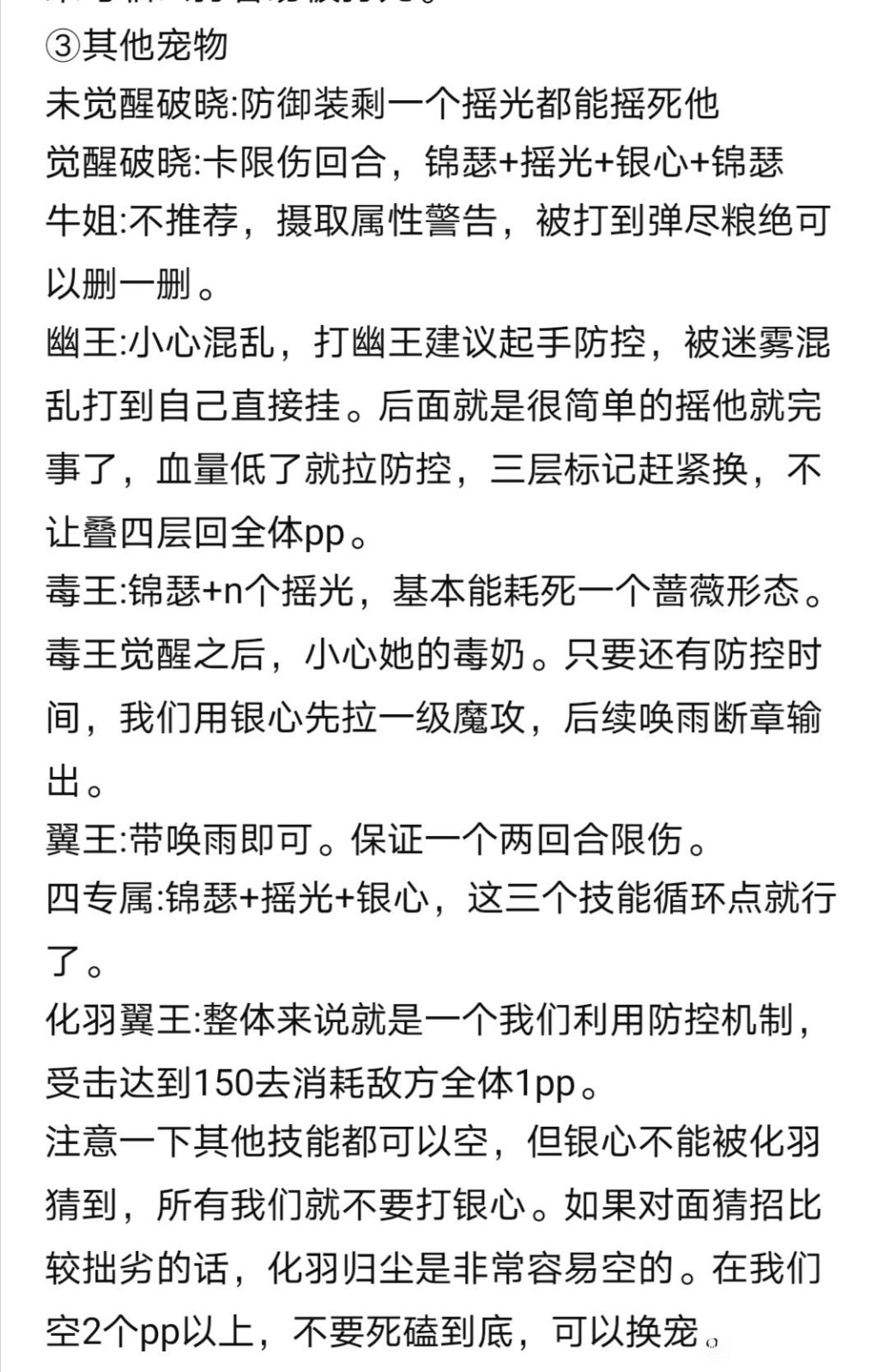 段伤+毒奶比较克制遇到燕普先打个银心试探一下顺便提升一级魔攻,伤害不错后续唤雨进攻。猜他霄练就打银心,猜他含光/分蛟可以用摇光/唤雨。血量不佳,宁愿换下也千万不要打摇光,非常容易把自己毒死。整体来说几乎-招都不能猜错,如果对面魔抗低我们更容易获胜。
