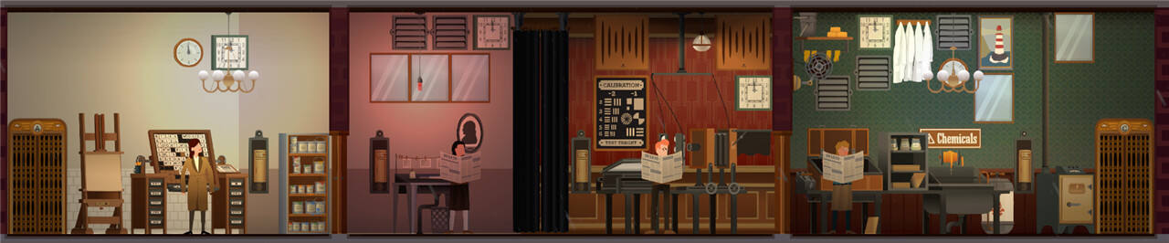 文字编辑师和排版员在一层,图片剪辑师、暗室、冲印、雕刻在一层。