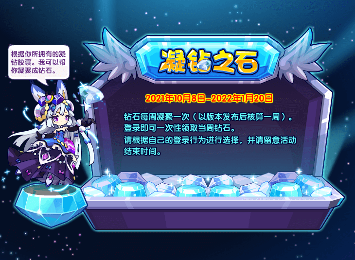 钻石每周凝聚一次(以版本发布后核算一周)。