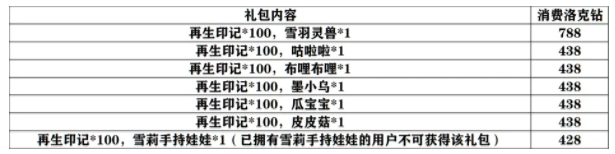 再生印记的来源一共有两处,第一处是直接购买《再生之时》活动中的礼包获得再生印记,以下是礼包内容的详细情况: