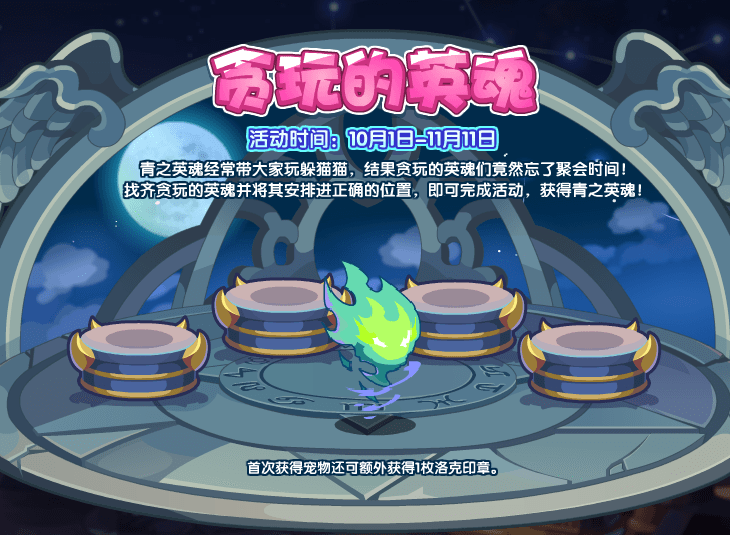 10月1日-11月11日在朗伊尔神庙群地图参与【贪玩的英魂】活动,找齐贪玩的英魂并将其安排进正确的位置,即可完成活动,获得青之英魂!