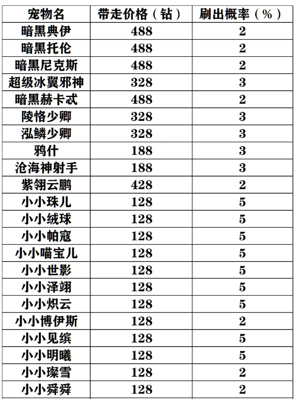 活动获得:各宠物