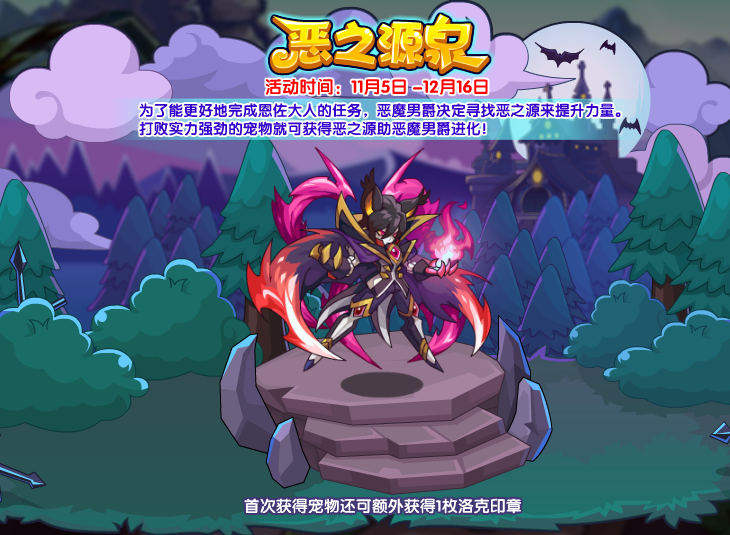 恶魔叮心血来潮想把家里打理布置的舒适一些,给恶魔叮推荐些好看的家居吧,完成活动还可获得宠物:恶魔叮。(可通过自然进化获得叮叮恶魔)