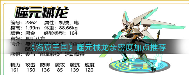 以上就是小编整理带来的《洛克王国》噬元械龙亲密度加点推荐,大家还喜欢吗?更多精彩内容,请点击关注易采游戏网,小编将持续为您更新!