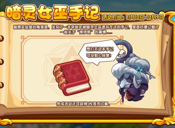 暗黑实验室的角落里,发现了一本早些年被暗灵女巫遗弃在这的手记,里面好像记载了一些关于“博伊斯”的事情……