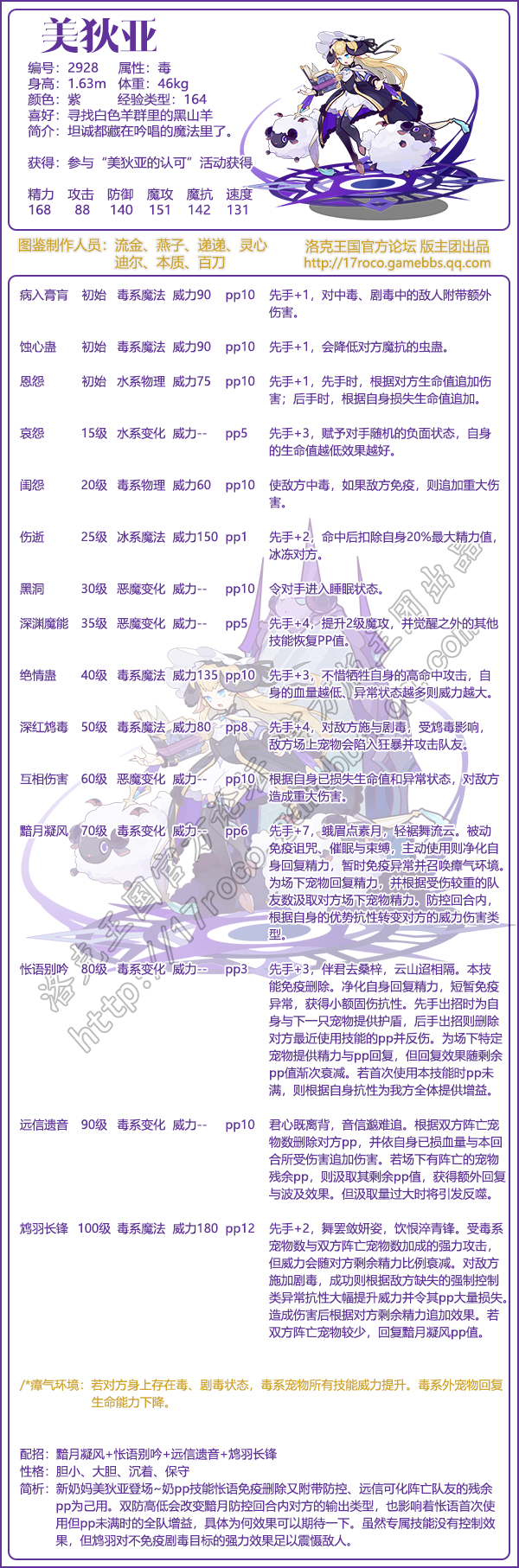 简析:新奶妈美狄亚登场—奶pp技能帐语免疫删除又附带防控、远信可化阵亡队友的残余pp为己用,双防高低会改变赌月防控回合内对方的输出类型,也影响着怅语首次使用但pp未满时的全队增益,具体为何效果可以期待一下,虽然专属技能没有控制效果,但鸩羽对不免疫剧毒目标的强力效果足以震慑敌人。一起期待美狄亚的降临吧。