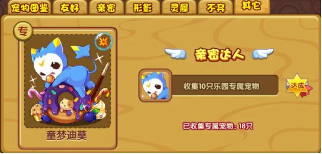 童梦迪莫需要点亮10只乐园宠物后在“亲密度成就图鉴→其它”中领取,不可吸引。
