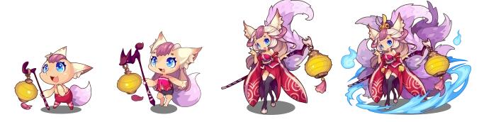 提灯狐童→掌灯媚狐→玄灵妲己→灵惑妲己(皮肤:聆月妲己)