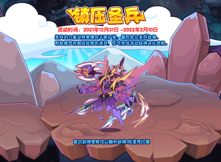 圣兵的力量没有束缚会不断扩张,最后危及圣兵自身。帮助修罗控制住狂怒的圣兵,即可完成活动获得进化资格。
