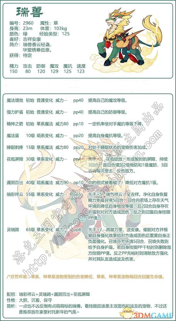 1、洛克王国的又一只麒麟,种族分配还可以,但是双防、魔攻有些低了,技能组也不好,甚至凑不出4个打PVP的技能。不过嘛,足够可爱就行了,收藏即可。
