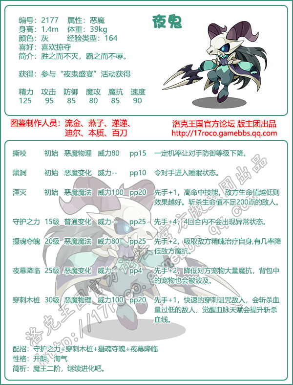 夜鬼是魔王二阶宠物,很少会有玩家直接用它的,基本都是等到进化到最后在用,一定要问技能配招情况,那么推荐技能搭配为:守护之力+穿刺木桩+摄魂夺魂+夜幕降临