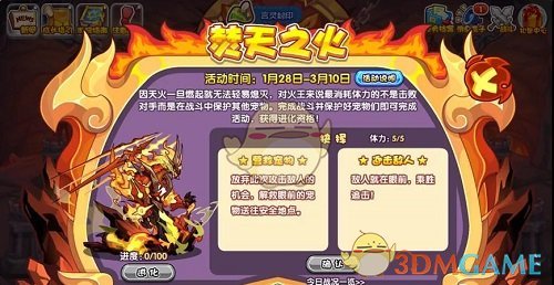 在游戏《洛克王国》中,每天玩家有五点体力,挑战敌人会扣除体力值增加进度,那么国焚天之火怎么玩呢?今天小编就给大家详细介绍一下焚天之火活动攻略,有需要的小伙伴不要错过了。