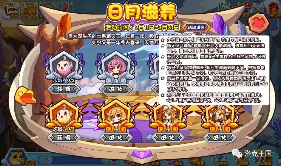 《洛克王国》游戏中很多小伙伴想知道紫月宝宝宠物怎么获得,这是土王系列宠物之一,2月11日更新后参与【日月滋养】活动就有机会获取!下面易采游戏网小编就给大家带来了《洛克王国》紫月宝宝宠物获取方法2022介绍,一起看看吧!