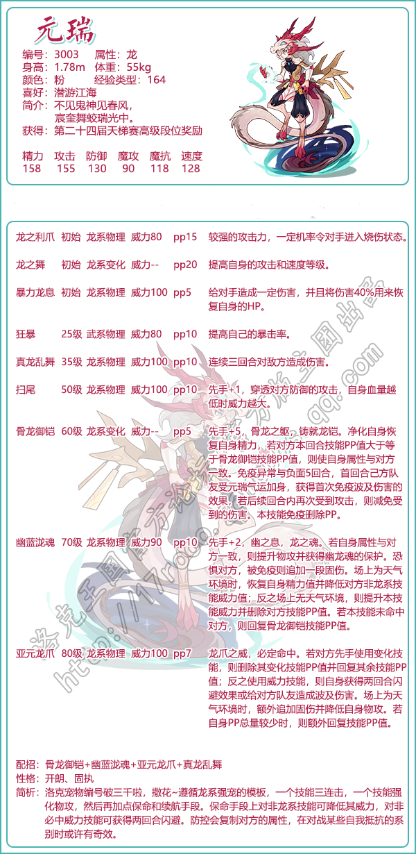 元瑞:获取方法 | 技能表 | 性格推荐 | 技能配招 | 亲密度加点