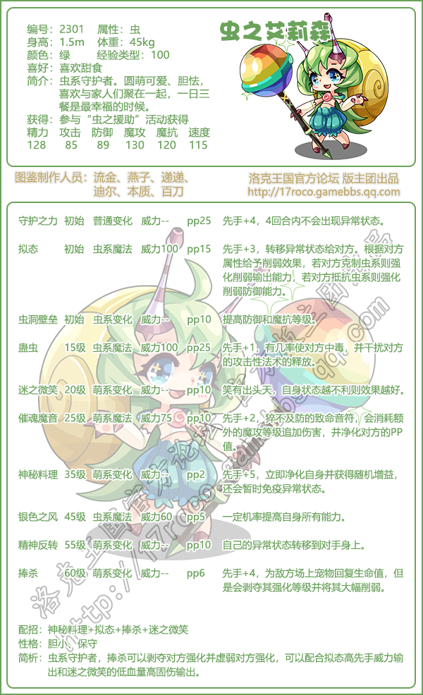 虫之艾莉森是虫系守护者,魔攻宠物,捧杀可以剥夺对方强化并虚弱对方强化,可以配合拟态高先手威力输出和迷之微笑的低血量高固伤输出。