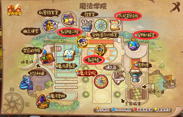 接下来就是前往洛克王国寻找活动提示的蜡烛所在地进行维护!由:阿阳(陆宇凡)提供的密报,魔法学院有四处地点(下图均已标出):