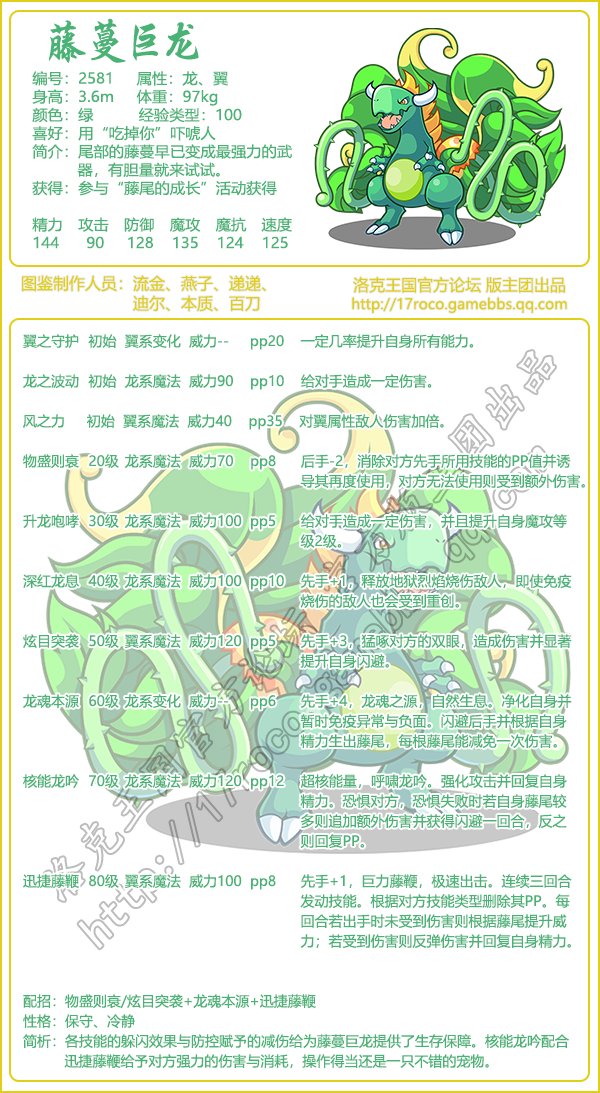 以上就是小编整理带来的《洛克王国》藤蔓巨龙配招推荐介绍,更多精彩内容,请点击关注易采游戏网,小编将持续为您更新!