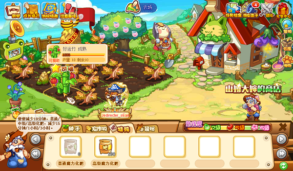 每天可以在左上角领取三颗好运竹,前往农场种植,成需要10分钟,着急的小洛克可以选择化肥加速。收获之后就可以翻牌好运竹啦!每次翻牌消耗两颗好运竹。
