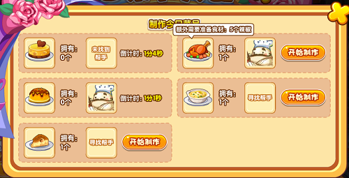 有一点数量的菜品后可以点击上菜,每天最多上菜三次。可以选择1~3种,品尝需要5分钟冷却,时间到了之后可以获得一定数量的美味值,选择种类越多获得的美味值越高: