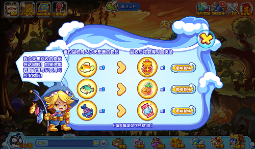 3、夏日垂钓活动,需要大家前往指定的几个场景钓鱼,每个场景都有一个或两个UP的鱼种,收集全部图鉴就可以领取一枚洛克印章,除此之外,多余的鱼种还可以找:垂钓回收商人 进行回收,可以兑换一些奖励: