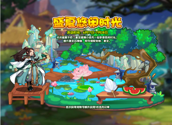 炎炎盛夏午后,夏至邀请小洛克一起享受悠闲时光。提升夏至心情值,即可领取宠物:夏至。