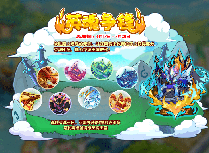 战胜路上遭遇的宠物,并在英魂小伙伴的手上获得部分英魂印记,助力英魂王座进化!