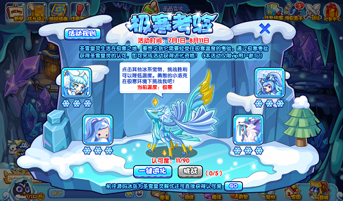 圣雪皇灵生活在极寒之地,要想见到它需要经受住极寒温度的考验。通过极寒考验获得圣雪皇灵的认可,即可完成活动获得进化资格!(本活动仅限vip用户参与)